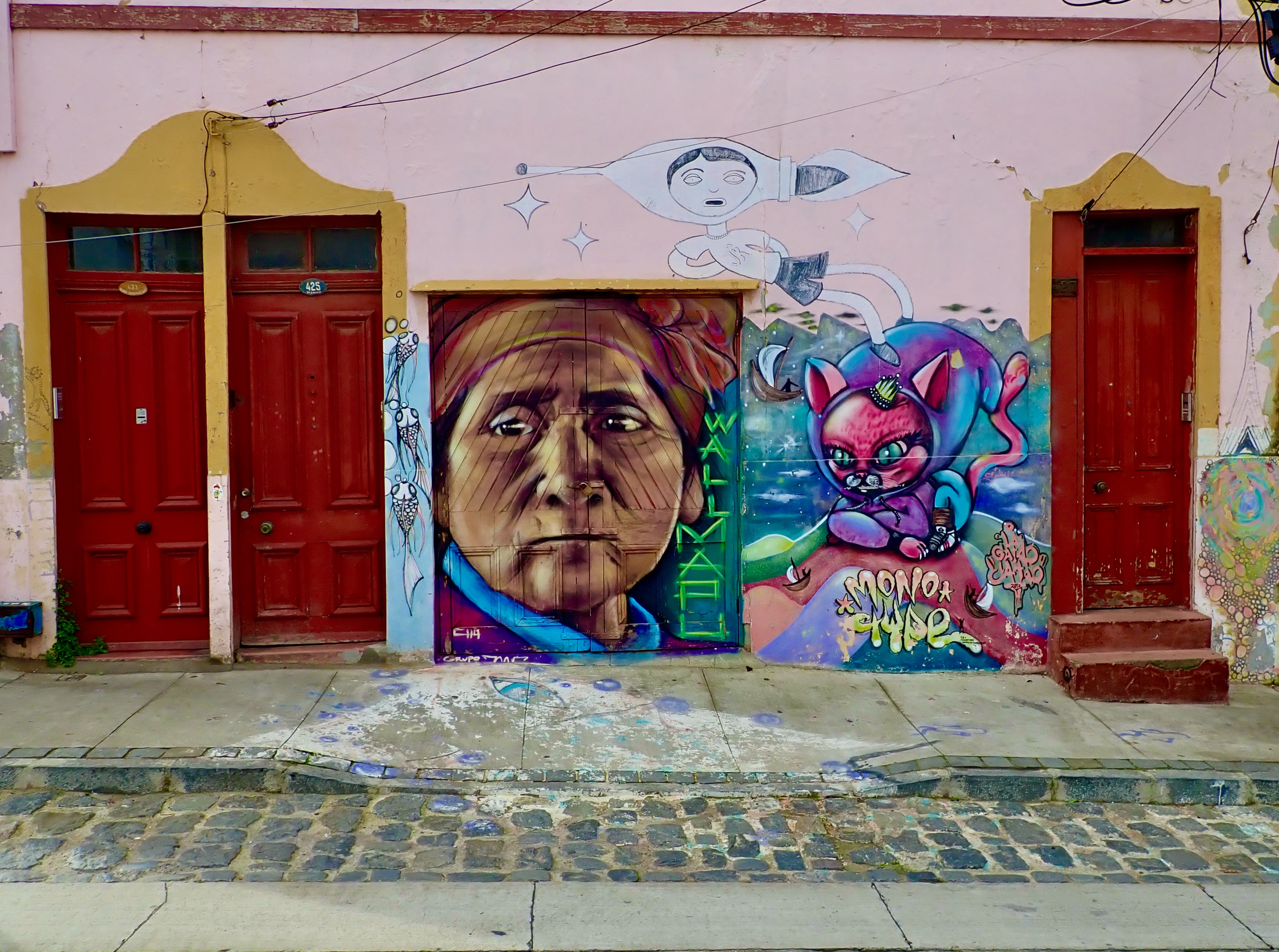 It is here when you walk out onto the street from the funicular station that the vibrancy of Valparaíso hits you – the art spills out everywhere, with colourful murals that breathe life into what once must have been dark and narrow alleys and streets. The murals transform the city into an open-air art exhibit. But the street art also goes beyond its aesthetics – it embodies the city’s political and social issues. These murals serve as a platform for public discourse, giving voice to diverse political perspectives, social commentaries, and cultural narratives. Stemming from a history of activism and social movements in the city, these artworks depict historical events, figures of significance, and pressing societal issues, asking the resident and the visitor to engage with what they convey, from human rights issues to environmental concerns.
