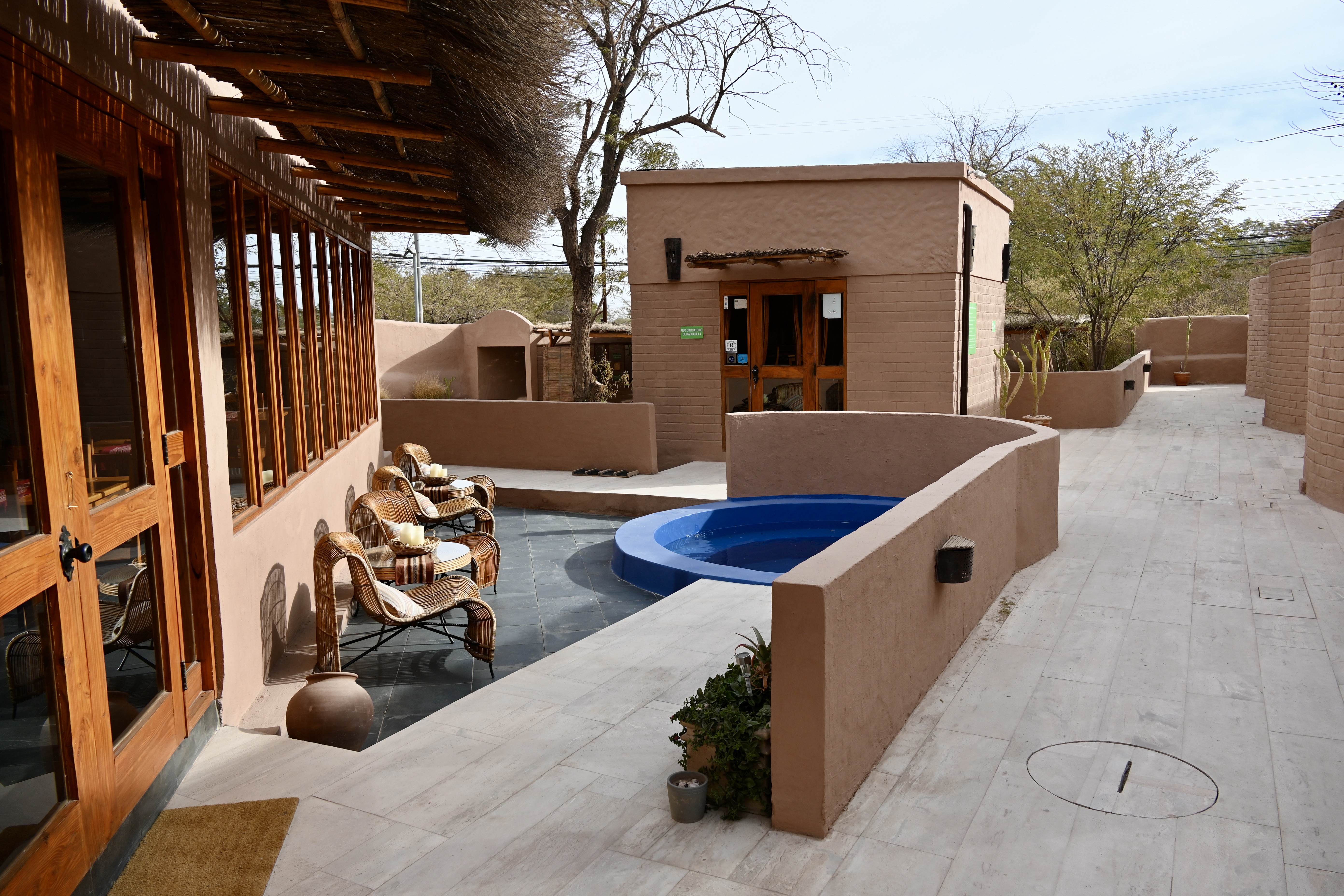 Finding my hotel for my four-night stay in San Pedro de Atacama was a breeze. Nestled on a quiet side street, it was just a short stroll from the heart of this charming town and it’s mostly pedestrian roads. Hotel Pascual Andino welcomed me with its adobe walls that encircled the tranquil oasis within. The hotels design seamlessly blended traditional adobe aesthetics with modern comforts, featuring an outdoor hot tub and cozy seating areas. My room was both spacious and impeccably clean, boasting a generous bathroom and a small outdoor seating area, all adorned in a distinctive Chilean style. To my surprise, a complimentary bottle of Chilean white wine from the Limuru Valley awaited me, setting the tone for my stay. Each morning I began my day of exploration with a complimentary breakfast, complete with made-to-order eggs and meats, freshly baked breads and pastries, juices, exceptional coffee, and fresh fruit. While on-site parking spaces were limited, I encountered no issues parking on an adjacent street one night. Moreover, if a spot is available the manager provides a remote for the gate, allowing guests with cars to come and go at their convenience. There were also bicycles on offer from the hotel, allowing guests to explore the town on two wheels.