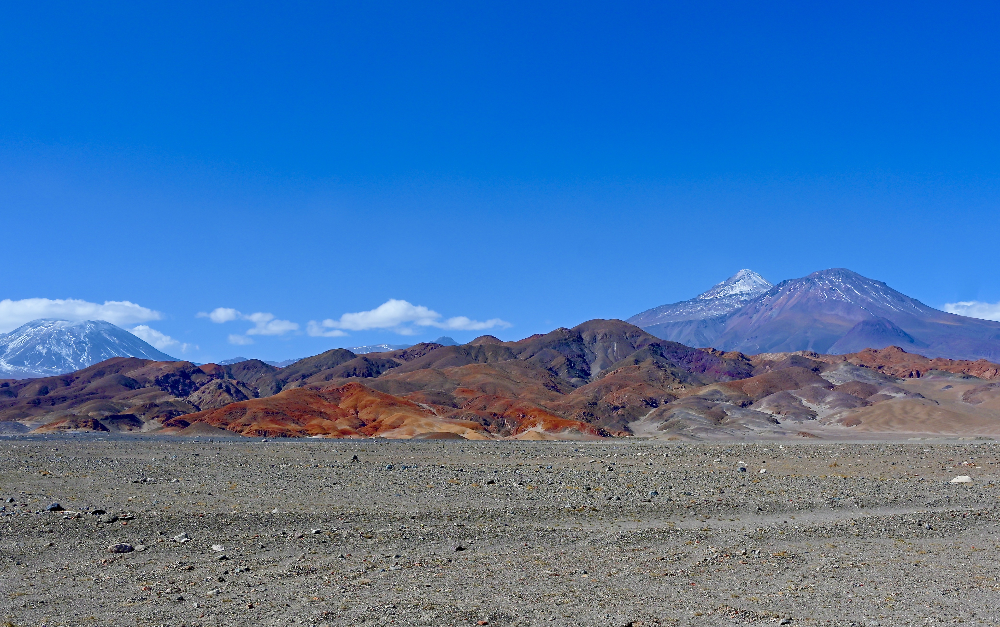 Yet, the Atacama offers much more than the captivating salt flats. As I ventured deeper into the desert, I encountered an amazing palette of colors – rusts, reds, oranges, and yellows – across the landscape. Bands of vivid clay streak across these nearby hills, that create colors that defy my sense of what a desert should look like. Adding to this, dormant volcanoes, including Licancabur, Lascar, and Juriques, gracefully loomed on the horizon. These towering peaks provided a fantastic backdrop to the salt flats, creating a perfect setting for photography enthusiasts like me. Many of these volcanoes are part of the magnificent Andes Mountain range.