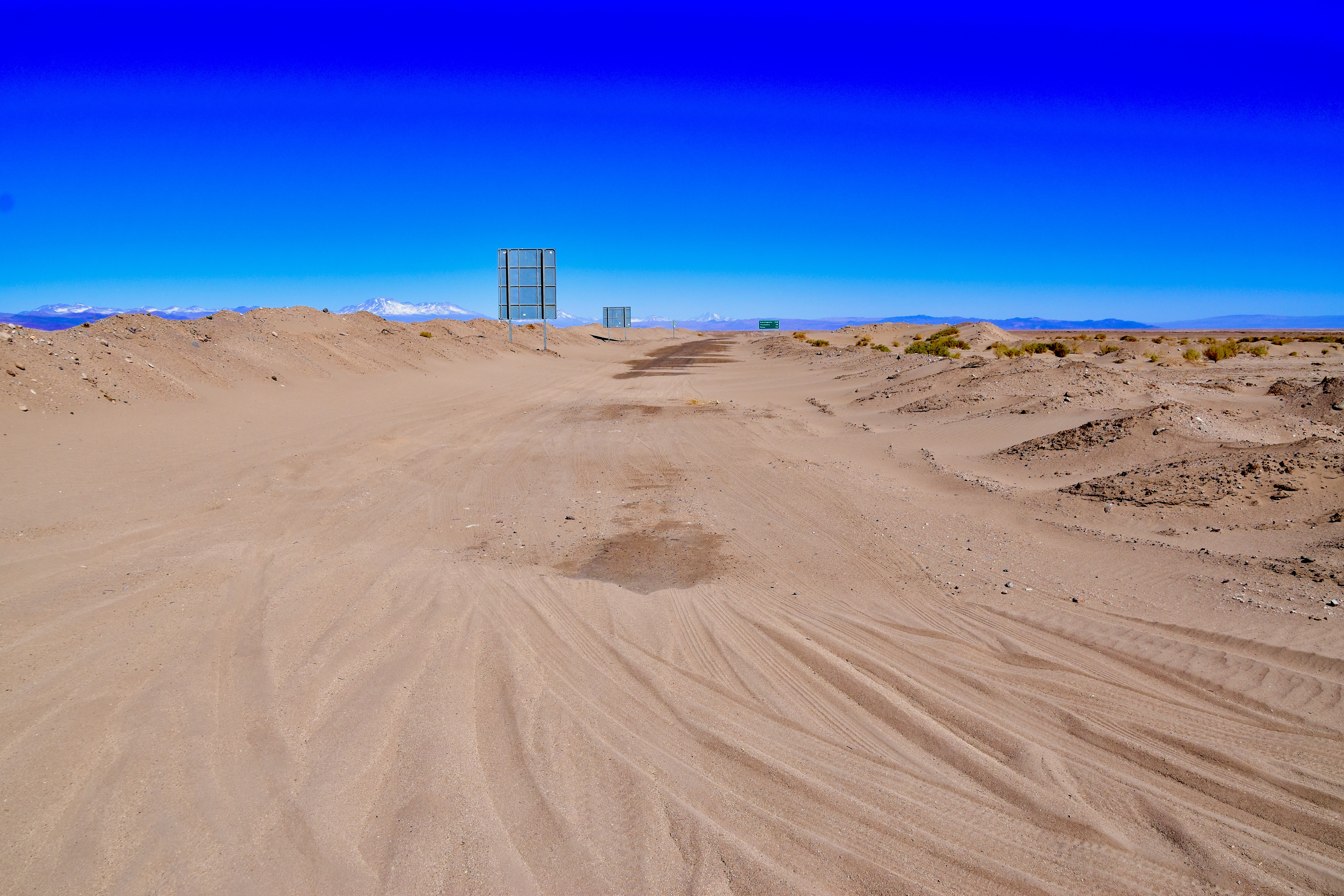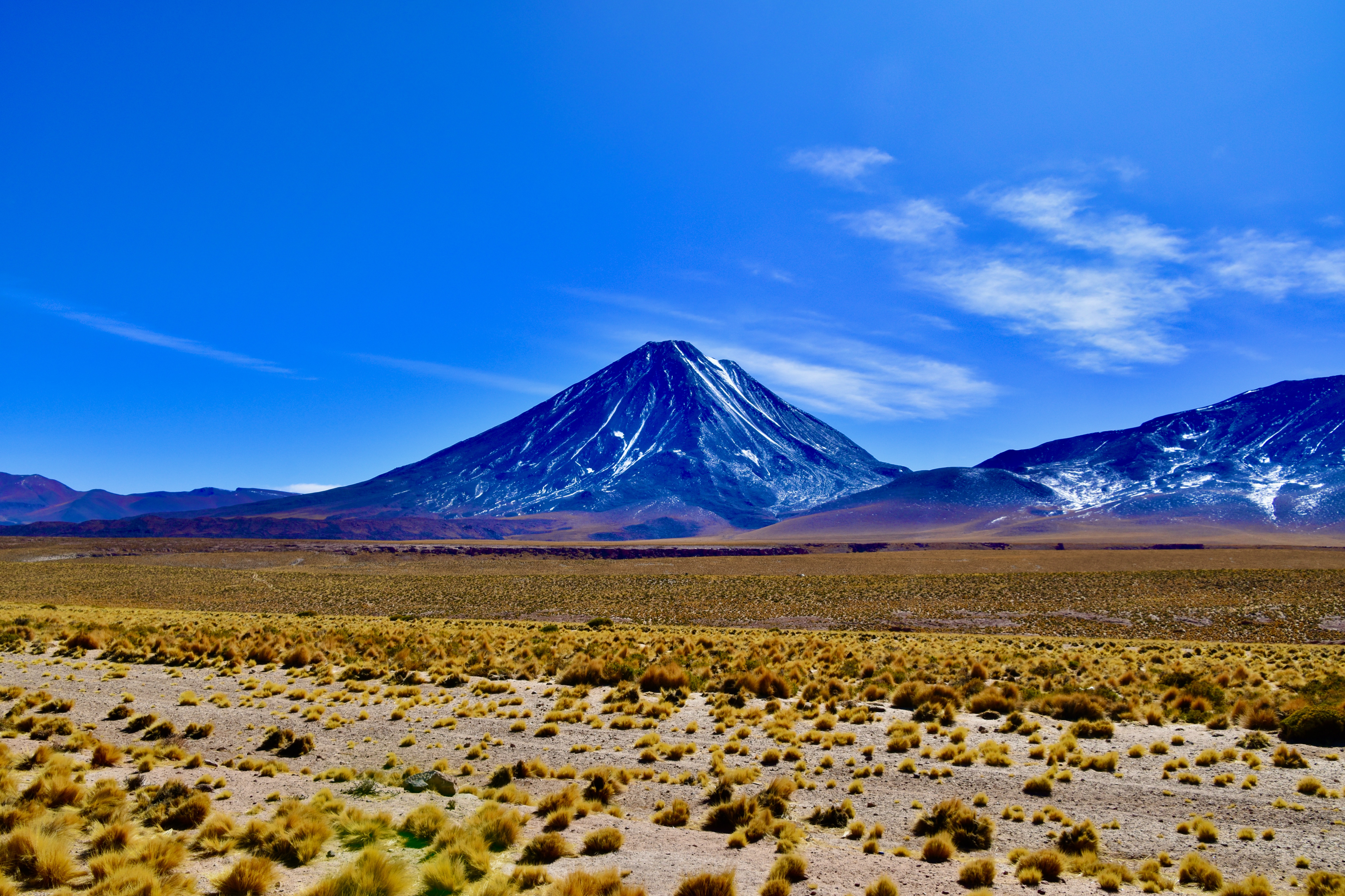 The Atacama Desert welcomes you with a surreal and beckoning landscape. As I ventured out on my journey across the arid salt flats and through the desert terrain, I found myself surrounded by incredible vistas, each showcasing the natural wonders of this unique landscape. One of the signature features of the Atacama Desert is its expansive salt flats, seeming endless and striking, where the bright blue sky meets the blinding white ground. The two primary salt flats, Salar de Atacama to the south of San Pedro de Atacama (approx. 90 minutes by car) and Salar de Tara to the northeast of town (a 45-minute drive), offer visitors an otherworldly and somewhat surreal experience. The stark contract between the foreign and almost lunar-like landscape, and the surrounding hills and mountains, is truly mesmerizing. It felt like I was pulling over every five minutes to take another photograph of the spectacular landscape!