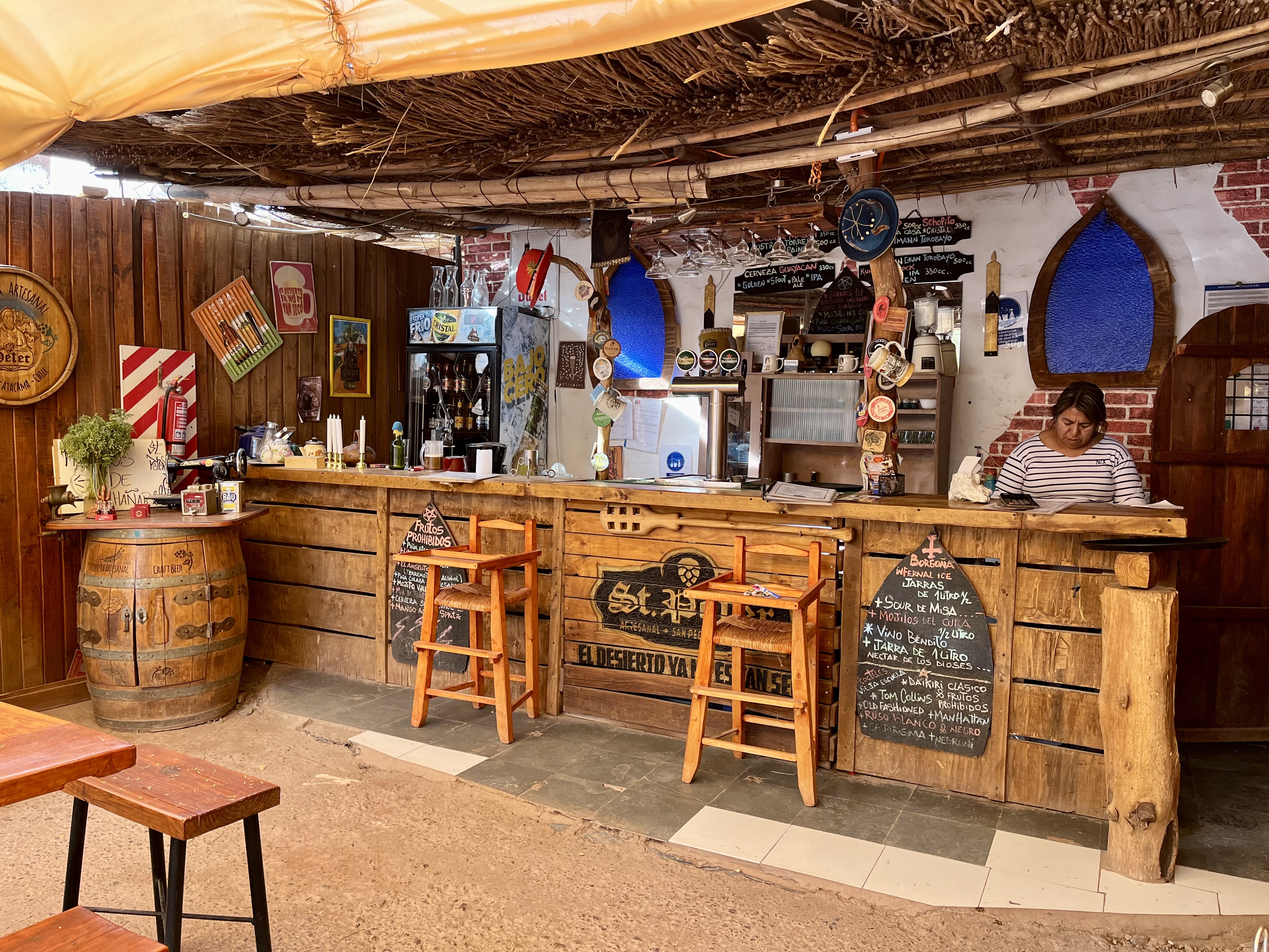 While not a brewpub, ChelaCabur is not to be overlooked if you’re in the mood for a pint. This small but busy bar exudes a lively atmosphere and decor, with music that leans toward the punk or metal end of the spectrum yet somehow feel right at home in this dusty desert town. Its décor encapsulates the essence of a backpacker’s dive bar, and is endless fun. The bar offers a diverse selection of Chilean beers, some on tap, with options ranging from half pints to pitchers. Plus, there’s always a soccer game playing on the TV in the corner, ensuring an engaging backdrop for your afternoon or evening.