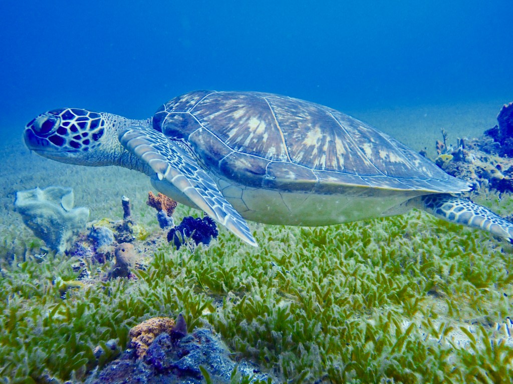 You can sign up ahead of time to take your Open Water Scuba Course, try an easy Beginner Scuba adventure, or – if you are comfortable in the water but not at depth – an easy snorkelling trip while the divers are down below. There is free parking on site, and their boats will get you out to the marine reserve in under five minutes. They run several two-tank dives throughout the day, starting in the early morning, allowing you to shower and complete your logbook before noon. Before you go, don’t forget to check on the very affectionate kittens at the dive shop and admire the Caribbean view! And if you have an underwater camera, you’ll want to make sure you have a chance to photograph the statue honoring Jacques Cousteau, located on the sand in the reserve at just 13m.